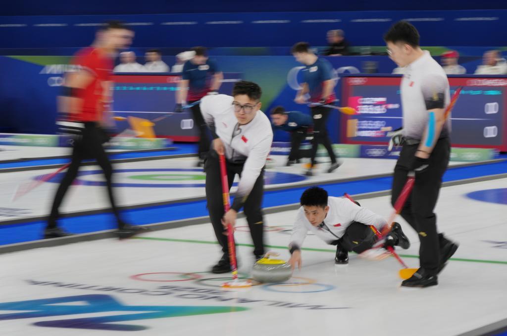 晚間比賽中,中國男隊(duì)迎戰(zhàn)瑞士隊(duì)。前兩局兩隊(duì)各自后手拿兩分,第四局瑞士隊(duì)?wèi){借出色的擊打后手獲三分,取得5:3領(lǐng)先。第五局和第七局中國隊(duì)均后手得兩分,八局后兩隊(duì)以7:7戰(zhàn)平??上ё詈髢删种袊?duì)連續(xù)被偷分,最終以7:9落敗。