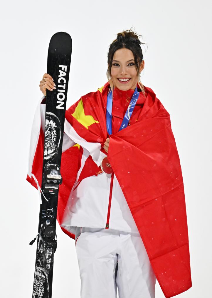 2月16日,中國(guó)選手谷愛凌在頒獎(jiǎng)儀式后。新華社記者 張宏祥 攝