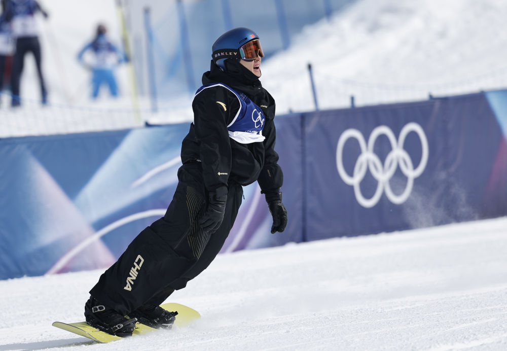2月18日,中國選手蘇翊鳴在比賽中。新華社記者 王鵬 攝