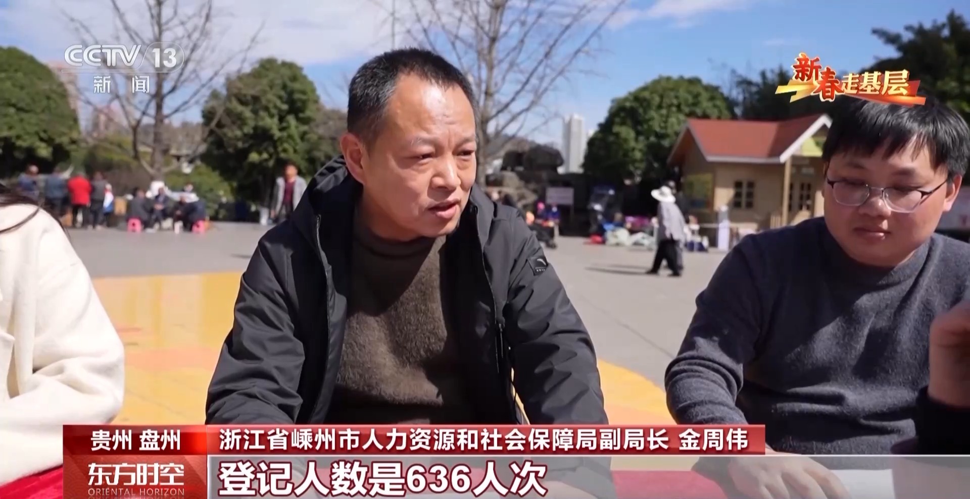 總臺(tái)央視記者 唐蕾:這里是貴州盤州市春風(fēng)行動(dòng)招聘會(huì)現(xiàn)場(chǎng),我們看到前來咨詢的勞動(dòng)者非常多,氣氛非?;鸨?,來自浙江、江蘇、貴州等地的65家企業(yè)帶來了3000多個(gè)崗位。
