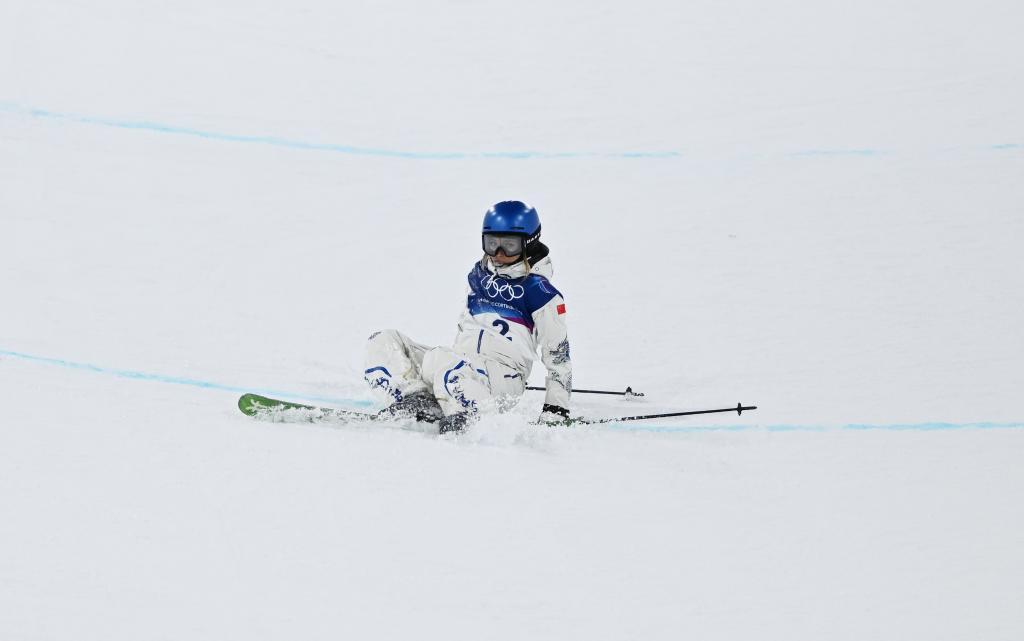 2月19日,中國選手谷愛凌在比賽中摔倒。新華社記者 鄔惠我 攝