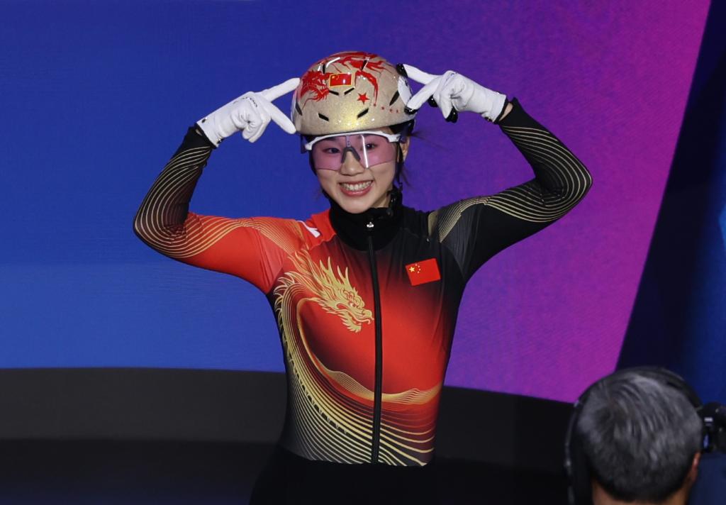 2月20日,楊婧茹在女子1500米A組決賽比賽前登場。新華社記者 陳益宸 攝