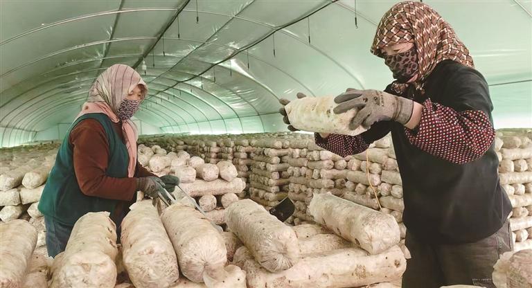 新民村村民在菌菇大棚忙碌。光明日?qǐng)?bào)記者 閆磊攝/光明圖片