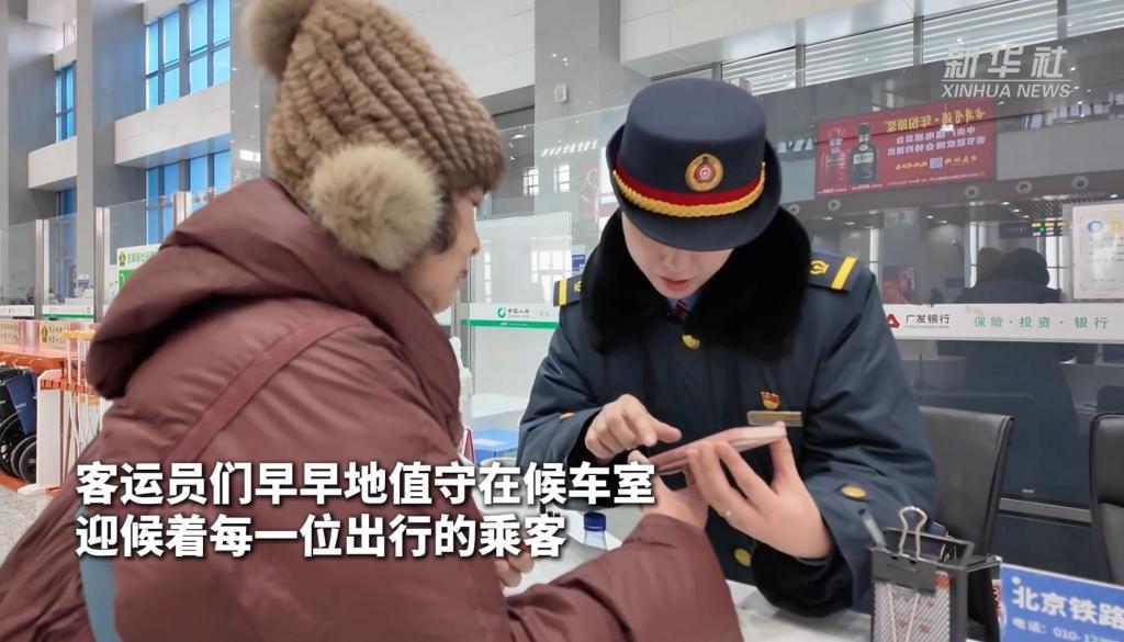 清晨,天色漸亮。在河北省承德南站,已有不少旅客陸續(xù)進(jìn)出車站,客運(yùn)員們?cè)缭绲刂凳卦诤蜍囀遥蛑恳晃怀鲂械某丝?。邢麗偉,是中?guó)鐵路北京局集團(tuán)有限公司承德車務(wù)段承德南站的一名客運(yùn)值班員。自2013年參加工作以來(lái),今年已經(jīng)是她經(jīng)歷的第13個(gè)春運(yùn)了。