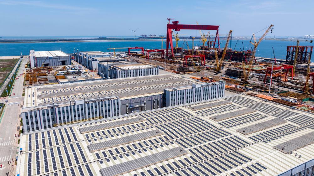 這是2025年6月拍攝的海油工程天津智能制造基地(無(wú)人機(jī)照片)。新華社記者 趙子碩 攝