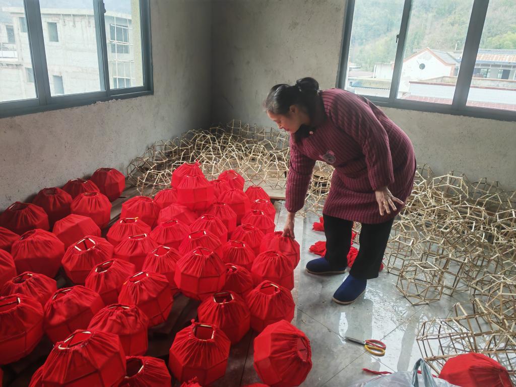 在石阡縣湯山街道,78歲的代尚福和他的兒子代鑫正忙著編扎毛龍。在他們的工作室院子里,一條約20米長的“仡佬毛龍”色彩鮮艷、神形逼真,竹篾作骨架,彩紙繞身纏。大大小小的房間里,堆滿了竹子、燈把、八方燈球等配件。