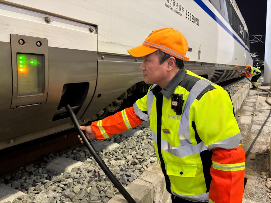 夜?jié)u深,進(jìn)入列車停運(yùn)的“天窗期”,由管道工、化驗(yàn)工等工種組成的作業(yè)小組進(jìn)入股道,各司其職開始工作。春運(yùn)期間,他們加大了維修保養(yǎng)的頻次,保障設(shè)備的穩(wěn)定運(yùn)行。