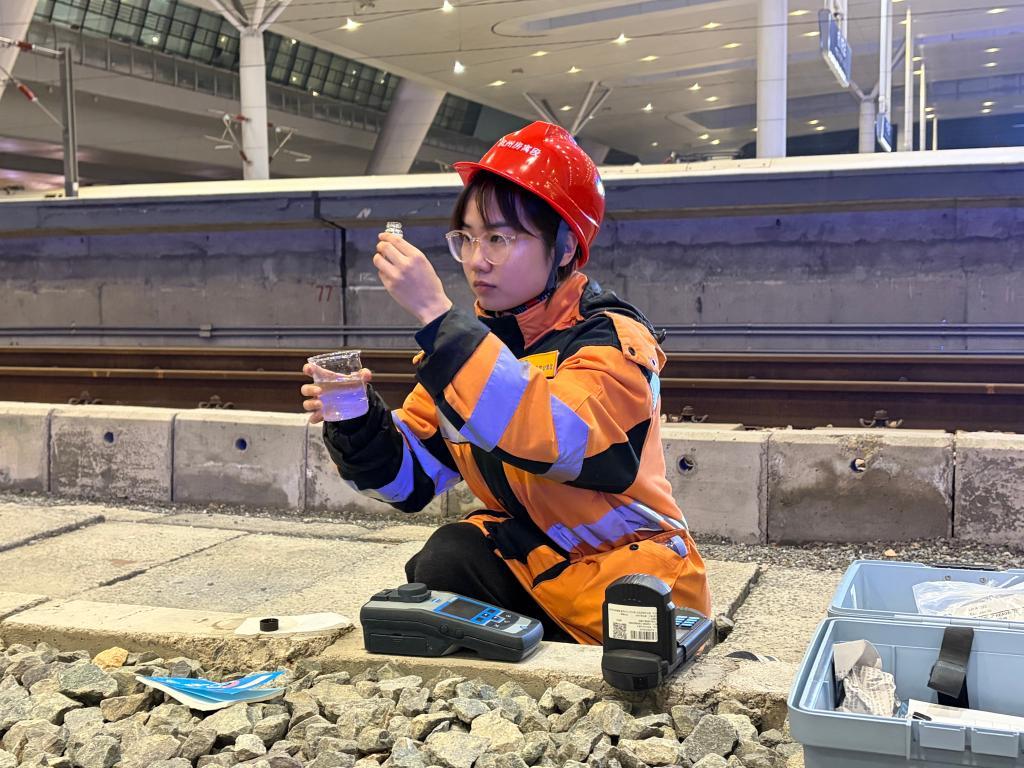 這頭,給水工區(qū)工長金雙喜手握一根聽漏棒,逐一檢查站臺消防設(shè)備、股道給水設(shè)備和站臺附近的水管,憑借多年經(jīng)驗(yàn),微小的“跑冒滴漏”都逃不過他的耳朵;那邊,化驗(yàn)工胡敏蝶接了水樣,現(xiàn)場就用便攜儀器檢測渾濁度、余氯、pH值等數(shù)據(jù)……