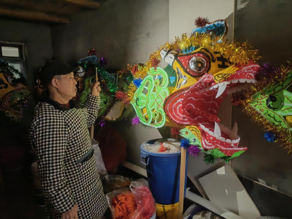 小時候,楊秀舉跟著父親學如何編扎毛龍。如今92歲的父親楊勝和,盡管很少動手編扎,但依然是兒子的“資深顧問”。
