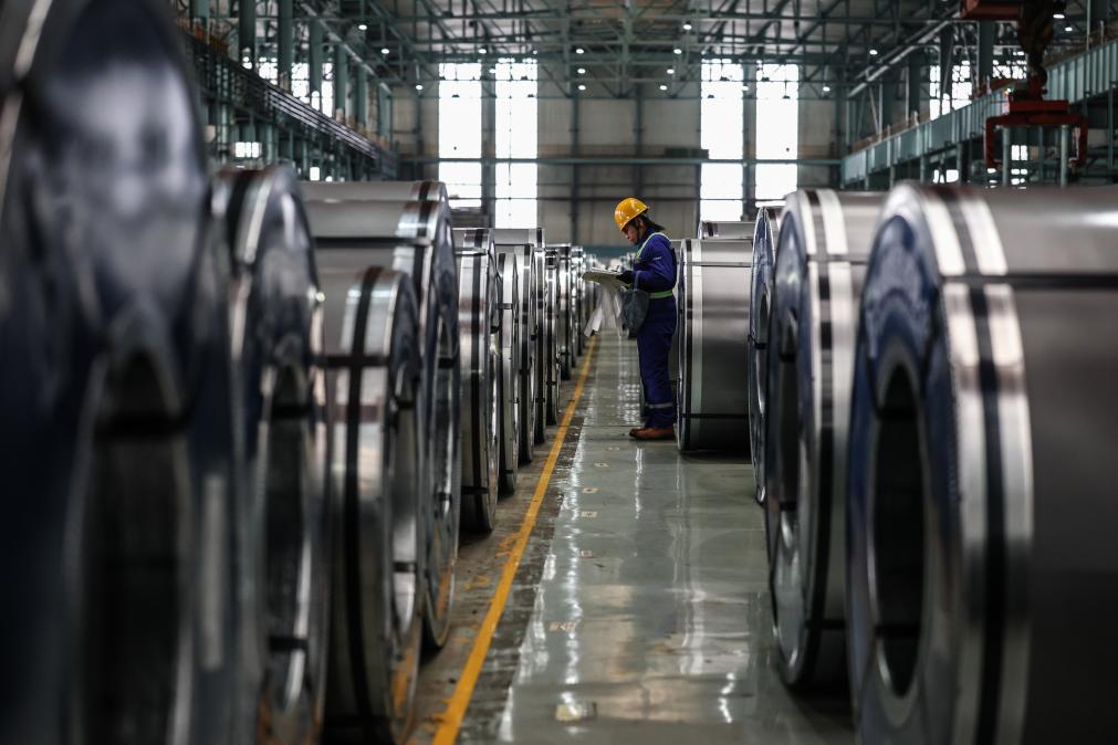 2025年12月6日,工作人員在本鋼板材冷軋總廠第三冷軋廠成品庫(kù)核對(duì)清點(diǎn)產(chǎn)品。新華社記者 潘昱龍 攝