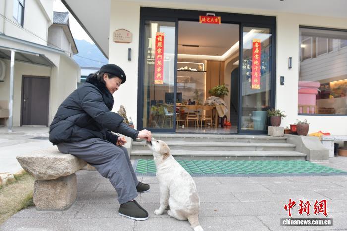 2月9日,安徽省池州市青陽縣一家民宿內(nèi),陳愛珍喂寵物吃東西。中新網(wǎng)記者 儲瑋瑋 攝
