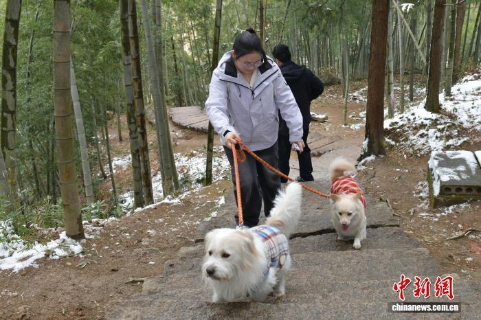 2月9日,安徽省池州市青陽縣九子巖風景區(qū),游客帶寵物游玩。中新網(wǎng)記者 儲瑋瑋 攝