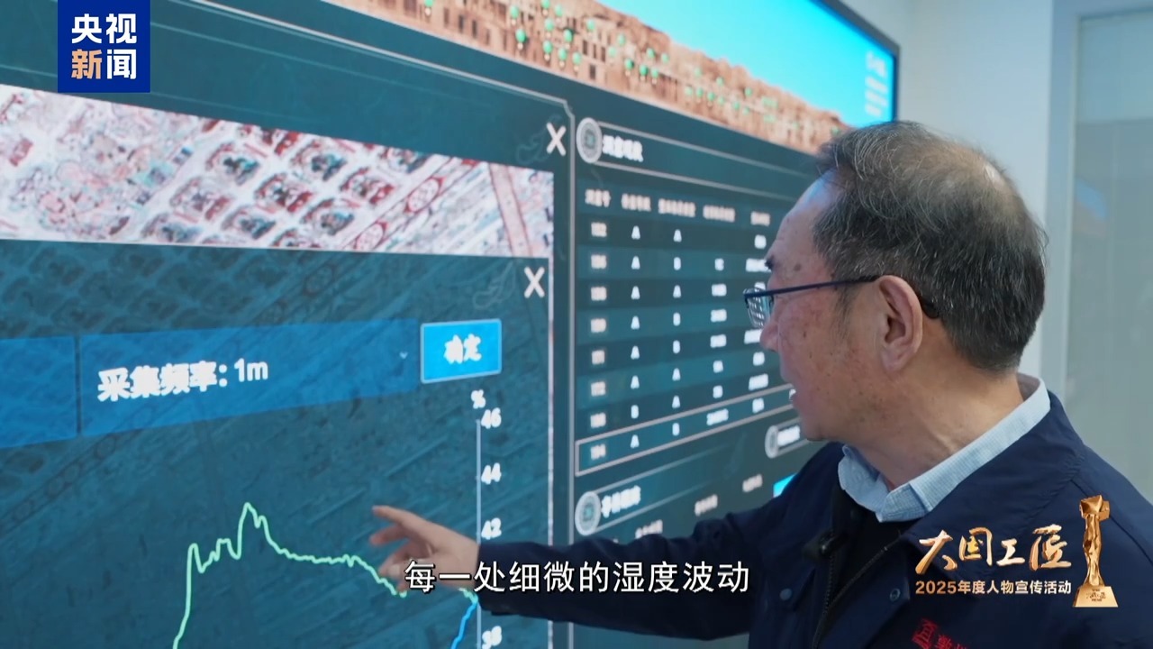 每一處細(xì)微的濕度波動(dòng)都會(huì)給壁畫(huà)帶來(lái)影響,樊再軒仔細(xì)觀察著石窟監(jiān)測(cè)系統(tǒng)上的數(shù)據(jù),隨后又帶領(lǐng)團(tuán)隊(duì)進(jìn)入洞窟,對(duì)壁畫(huà)進(jìn)行復(fù)查。