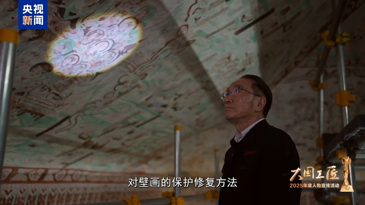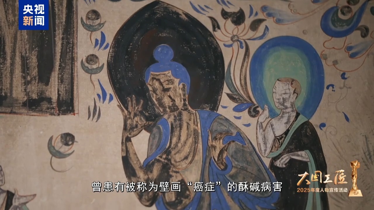2025年大國(guó)工匠年度人物、敦煌研究院壁畫(huà)保護(hù)修復(fù)專(zhuān)家 樊再軒:這里,是我守護(hù)一生的地方——敦煌莫高窟,它是大漠深處矗立千年的文明圣殿。45年前,我開(kāi)始修復(fù)敦煌壁畫(huà),總感覺(jué)是在和古代的畫(huà)工們進(jìn)行著跨越時(shí)空的交流。這些壁畫(huà),它是會(huì)呼吸的,它是有生命的。然而,壁畫(huà)當(dāng)中潛藏著很多的可溶鹽,在洞窟里受到溫濕度的影響,反復(fù)地潮解、結(jié)晶,導(dǎo)致壁畫(huà)膨脹、收縮。就像一雙雙無(wú)形的手,在一點(diǎn)一點(diǎn)撕裂著壁畫(huà)的肌膚,這就是壁畫(huà)“癌癥”。我暗下決心:要讓這千年瑰寶在時(shí)光的長(zhǎng)河里留存得久一點(diǎn),更久一點(diǎn)。