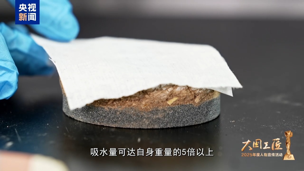 反復(fù)探尋,樊再軒和團(tuán)隊(duì)終于鎖定了一種最優(yōu)材料,吸水量可達(dá)自身重量的5倍以上,持水性能優(yōu)異,并且不會(huì)對(duì)珍貴壁畫(huà)造成損傷。