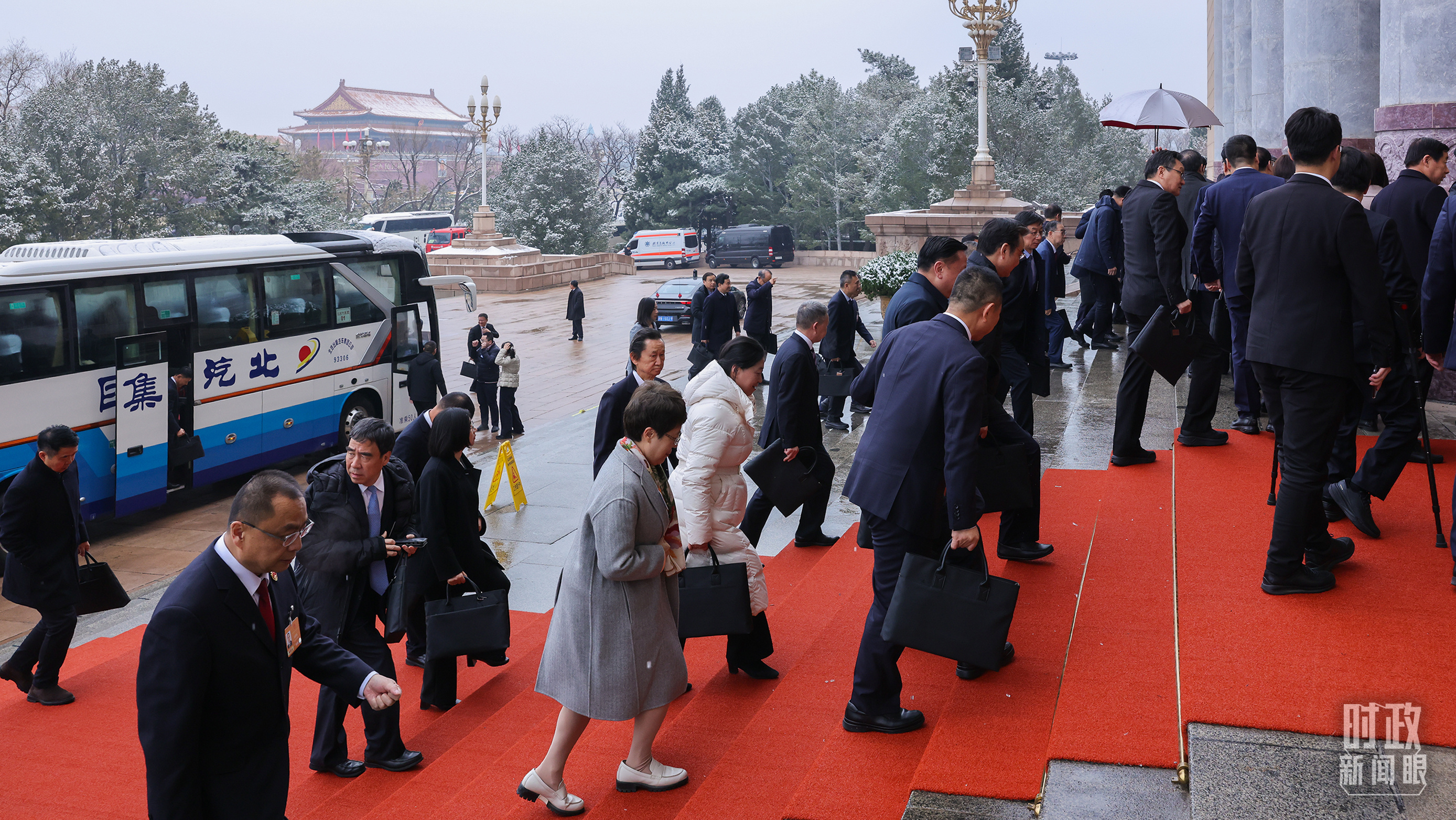 △江蘇代表團(tuán)抵達(dá)人民大會堂。(江蘇省廣播電視總臺記者張正拍攝)