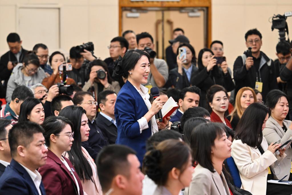 3月7日,十四屆全國(guó)人大四次會(huì)議在北京梅地亞中心新聞發(fā)布廳舉行記者會(huì)。教育部部長(zhǎng)懷進(jìn)鵬、民政部部長(zhǎng)陸治原、人力資源和社會(huì)保障部部長(zhǎng)王曉萍、文化和旅游部部長(zhǎng)孫業(yè)禮、國(guó)家衛(wèi)生健康委員會(huì)主任雷海潮就教育、民政、人力資源和社會(huì)保障、文旅、衛(wèi)生健康等相關(guān)問題回答中外記者提問。這是記者在提問。新華社記者 李鑫 攝