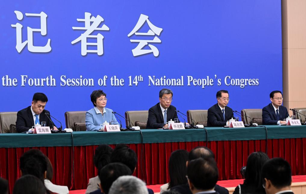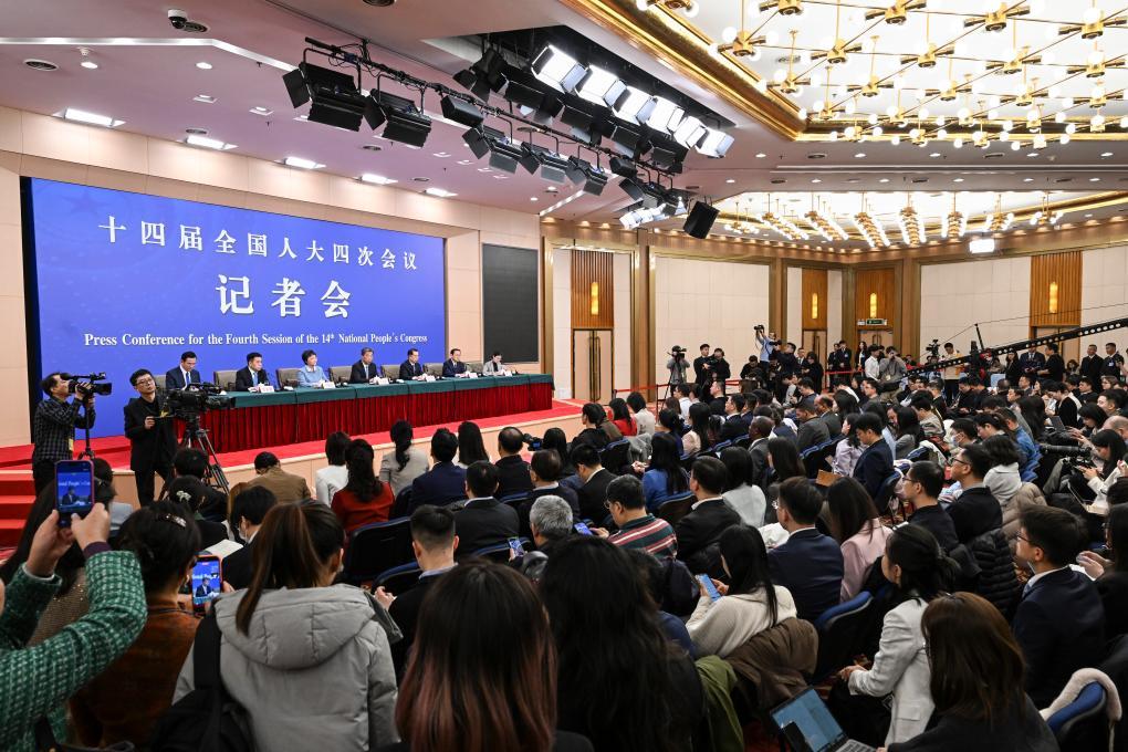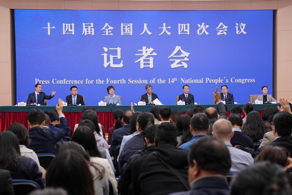 3月7日,十四屆全國(guó)人大四次會(huì)議在北京梅地亞中心新聞發(fā)布廳舉行記者會(huì)。教育部部長(zhǎng)懷進(jìn)鵬、民政部部長(zhǎng)陸治原、人力資源和社會(huì)保障部部長(zhǎng)王曉萍、文化和旅游部部長(zhǎng)孫業(yè)禮、國(guó)家衛(wèi)生健康委員會(huì)主任雷海潮就教育、民政、人力資源和社會(huì)保障、文旅、衛(wèi)生健康等相關(guān)問題回答中外記者提問。新華社記者 王曦 攝
