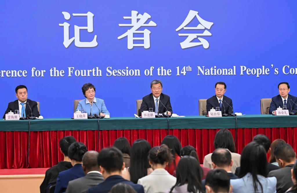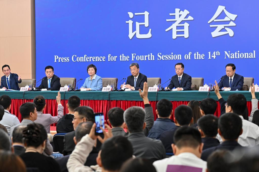 3月7日,十四屆全國(guó)人大四次會(huì)議在北京梅地亞中心新聞發(fā)布廳舉行記者會(huì)。教育部部長(zhǎng)懷進(jìn)鵬、民政部部長(zhǎng)陸治原、人力資源和社會(huì)保障部部長(zhǎng)王曉萍、文化和旅游部部長(zhǎng)孫業(yè)禮、國(guó)家衛(wèi)生健康委員會(huì)主任雷海潮就教育、民政、人力資源和社會(huì)保障、文旅、衛(wèi)生健康等相關(guān)問題回答中外記者提問。新華社記者 李鑫 攝