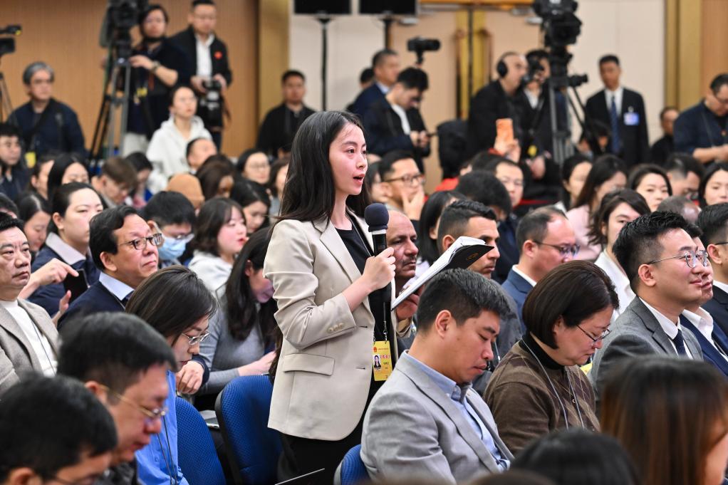3月7日,十四屆全國(guó)人大四次會(huì)議在北京梅地亞中心新聞發(fā)布廳舉行記者會(huì)。教育部部長(zhǎng)懷進(jìn)鵬、民政部部長(zhǎng)陸治原、人力資源和社會(huì)保障部部長(zhǎng)王曉萍、文化和旅游部部長(zhǎng)孫業(yè)禮、國(guó)家衛(wèi)生健康委員會(huì)主任雷海潮就教育、民政、人力資源和社會(huì)保障、文旅、衛(wèi)生健康等相關(guān)問題回答中外記者提問。這是記者舉手提問。新華社記者 李鑫 攝