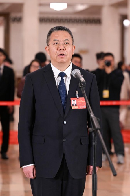 3月9日,第十四屆全國人民代表大會(huì)第四次會(huì)議第二場(chǎng)“代表通道”集中采訪活動(dòng)在北京人民大會(huì)堂舉行。這是全國人大代表李長東接受媒體采訪。新華社記者 程婷婷 攝