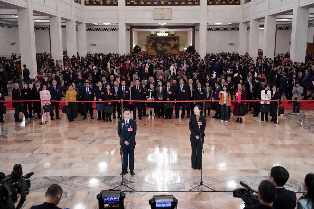 3月9日,第十四屆全國人民代表大會(huì)第四次會(huì)議第二場(chǎng)“代表通道”集中采訪活動(dòng)在北京人民大會(huì)堂舉行。新華社記者 傅天 攝