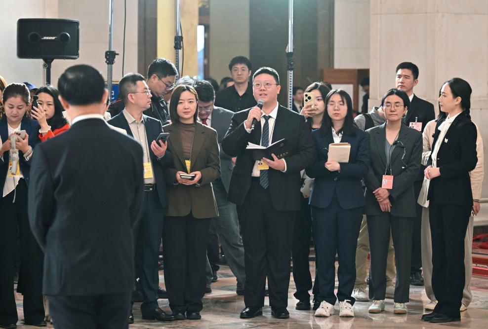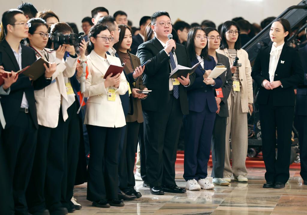 3月9日,第十四屆全國人民代表大會(huì)第四次會(huì)議第二場(chǎng)“代表通道”集中采訪活動(dòng)在北京人民大會(huì)堂舉行。這是記者在現(xiàn)場(chǎng)提問。新華社記者 金立旺 攝