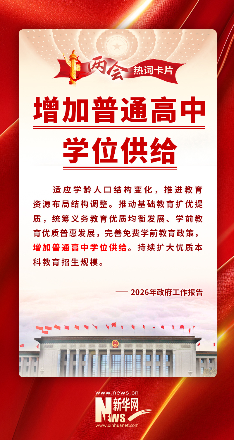 政府工作報告起草組負責(zé)人、國務(wù)院研究室主任沈丹陽:今年的政府工作報告明確,增加普通高中學(xué)位供給。具體來說,就是對人口持續(xù)凈流入的縣城和中心城區(qū),將分年度規(guī)劃建設(shè)一批普通高中;對學(xué)位缺口臨時緊張的地區(qū),將優(yōu)先改擴建已有教學(xué)樓、學(xué)生宿舍和食堂。實際上,一些地方年初就已經(jīng)對這項工作作出安排了,大家如果關(guān)注地方召開的兩會就會看到,很多省都在這方面有安排。比如,廣東提出新增普通高中學(xué)位20萬個以上,湖南提出擴充優(yōu)質(zhì)普通高中公辦學(xué)位8萬個,這些將明顯增加學(xué)生接受優(yōu)質(zhì)普通高中教育的機會。這就是一個實實在在的民生的事。