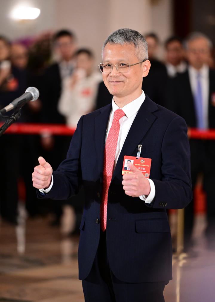 3月11日,全國政協(xié)十四屆四次會議第三場“委員通道”集體采訪活動在北京人民大會堂舉行。這是全國政協(xié)委員屠海鳴接受媒體采訪。新華社記者 陳曄華 攝