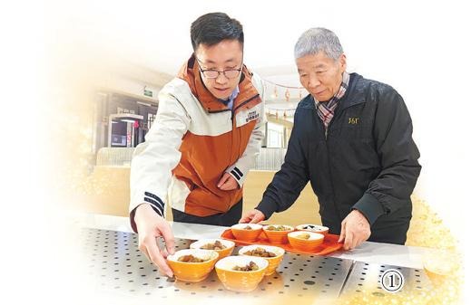 午餐時間,楊俊哲來到養(yǎng)老示范城的餐廳,俯下身,語氣溫和地詢問老人:“今天的菜合不合胃口?分量夠不夠?”老人們你一言、我一語,笑著和他搭話?!叭饽┒垢贸裕浤廴胛丁薄昂ЫY(jié)味道不錯,就是有點偏硬”“西紅柿炒雞蛋建議別放糖”……楊俊哲摸清老人們的口味變化、飲食偏好與細(xì)微需求,餐后再和后廚師傅溝通調(diào)整?!袄夏瓴筒辉撌枪训洜€的代名詞,而是精準(zhǔn)適配、營養(yǎng)與美味兼具的健康守護(hù)。”楊俊哲說。