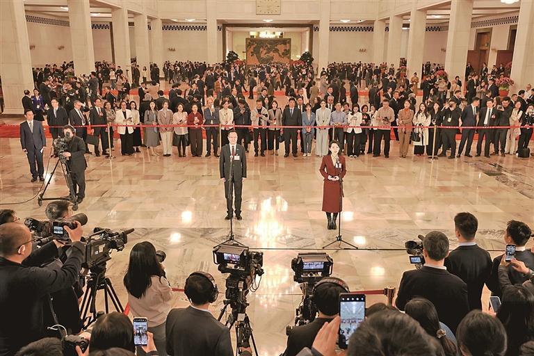 3月12日,十四屆全國(guó)人大四次會(huì)議第三場(chǎng)“代表通道”集中采訪活動(dòng)在人民大會(huì)堂舉行。光明日?qǐng)?bào)記者 孫金行攝/光明圖片