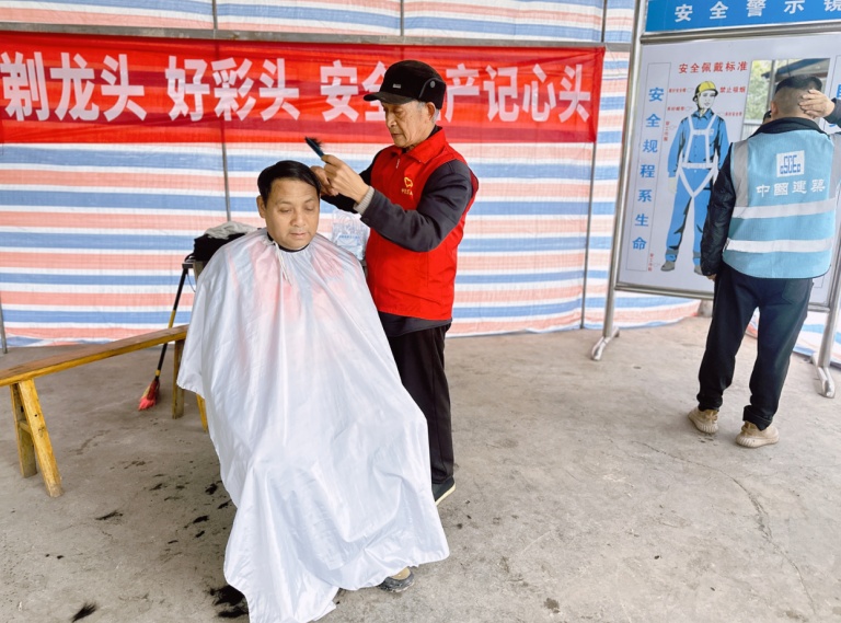 “平時忙,出去理發(fā)不方便,這下真好,在工地上就把發(fā)理了。”鋼筋工王師傅摸著新發(fā)型,笑容滿面地說道。