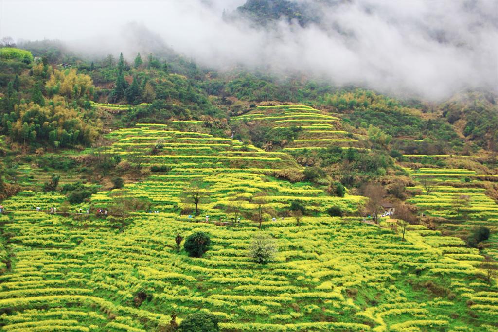 在江西婺源,13萬(wàn)畝油菜花次第綻放。金黃花海間,粉墻黛瓦的徽派古村錯(cuò)落有致,萬(wàn)畝梯田層疊起伏,油菜花與青山碧水相映成趣。廣東游客黃婧身著傳統(tǒng)服飾,置身花海間:“不是單純看風(fēng)景,更是感受到了江南鄉(xiāng)村的煙火氣?!?/p>