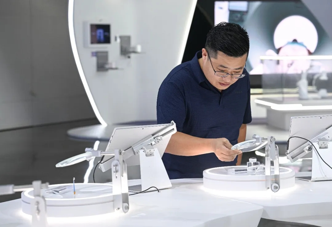 觀眾在海南自貿(mào)港重點園區(qū)——博鰲樂城國際醫(yī)療旅游先行區(qū)觀看“永不落幕”國際創(chuàng)新藥械展(2025年10月27日攝)。新華社記者 蒲曉旭 攝