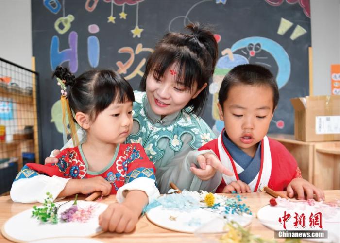 雄安“萌娃”過中秋。中新社記者 韓冰 攝