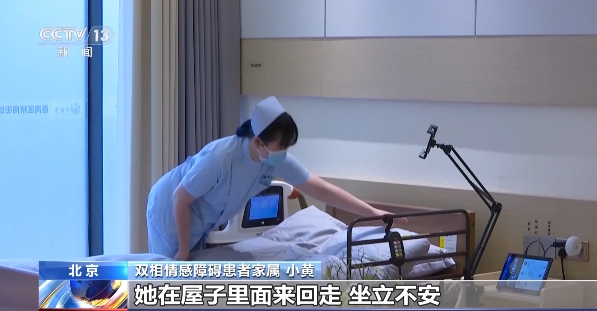 雙相情感障礙患者家屬 小黃:她在屋子里面來回走,坐立不安,吃飯會(huì)打嗝,總是懷疑自己有什么樣的問題,晚上睡覺也睡不好。最嚴(yán)重的時(shí)候不吃飯不喝水,眼睛比較空洞,已經(jīng)很嚴(yán)重了。
