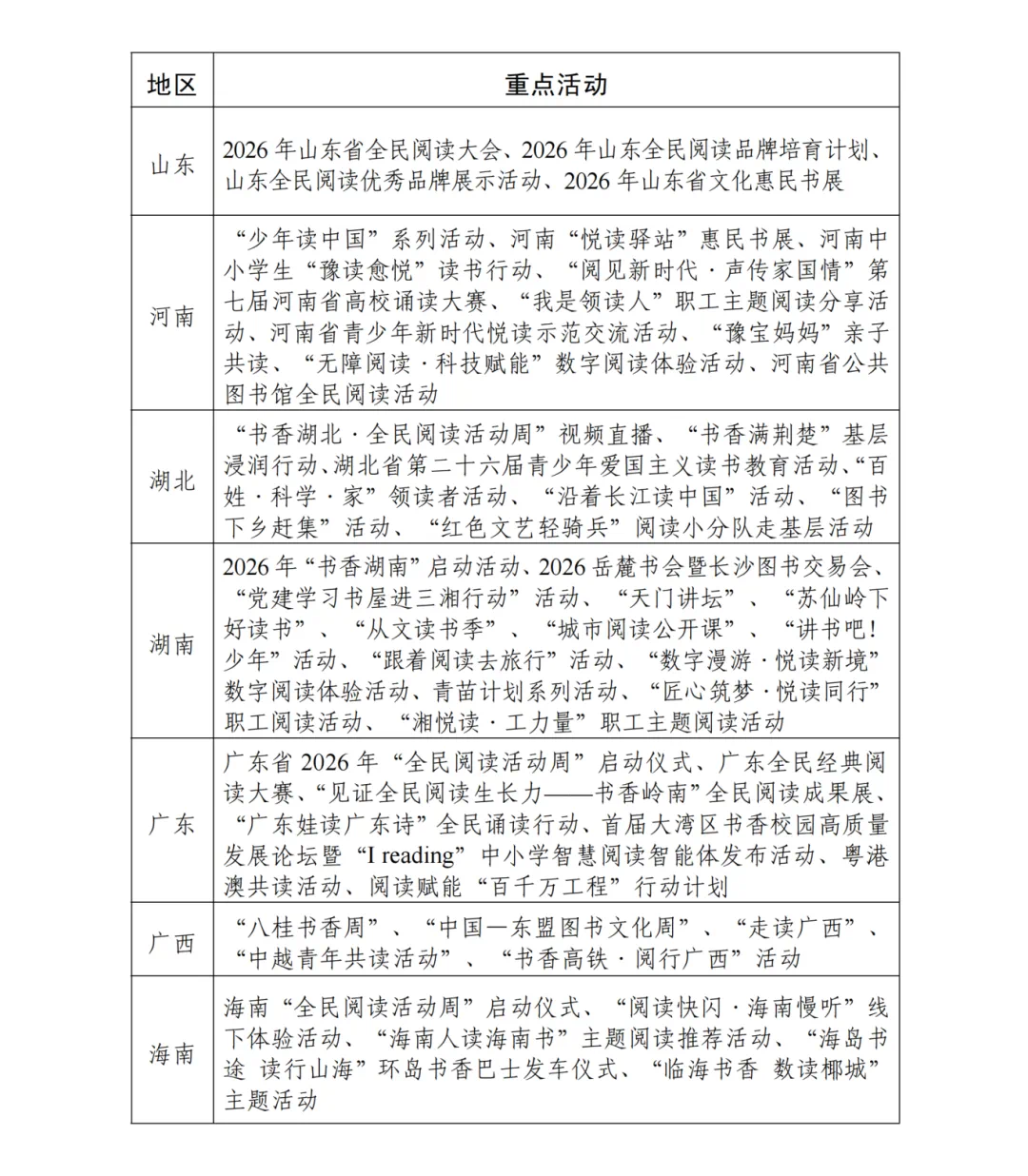 2026年“全民閱讀活動(dòng)周”各地區(qū)重點(diǎn)活動(dòng)