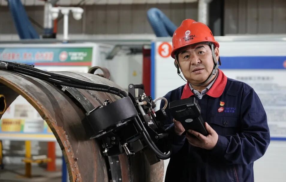 那是他的徒弟、兵團(tuán)工匠劉壯壯?!皫煾?,您剛才說(shuō)的那些,讓我想起當(dāng)年您上的第一課——您讓我們焊一道平焊,然后用砂輪把表面磨掉,指著里面的夾渣說(shuō)‘不能光顧著表面好看,里面糊弄了’,這句話,我一直記著?!眲褖颜f(shuō)。