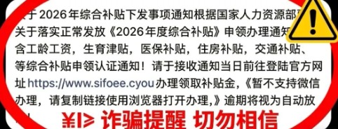 這類詐騙的常見套路是編造虛假福利信息,誘導(dǎo)群眾點(diǎn)擊鏈接或掃描二維碼,進(jìn)入假冒的“官方”網(wǎng)站或小程序等,填寫身份證、銀行卡、密碼、驗(yàn)證碼等個(gè)人信息,以達(dá)到騙取錢財(cái)?shù)哪康摹?/p>