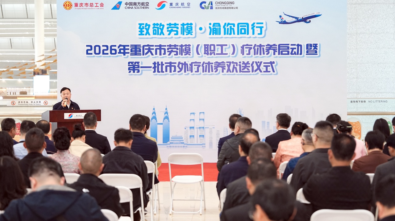 “平時(shí)工作忙,難得有這樣的機(jī)會放松身心,心里感到特別溫暖!”4月13日,重慶江北國際機(jī)場候機(jī)大廳里,歡聲笑語不斷。來自全市的130余名勞模和優(yōu)秀技術(shù)工人精神抖擻,臉上洋溢著期待與喜悅。當(dāng)天,重慶市總工會在這里舉行2026年重慶市勞模(職工)療休養(yǎng)啟動暨第一批市外療休養(yǎng)歡送儀式,90余名勞模和優(yōu)秀技術(shù)工人赴北京療休養(yǎng),另有40余名勞模和優(yōu)秀技術(shù)工人將分別前往廈門和桂林。