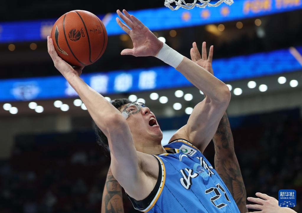 4月14日,北京北汽隊球員周琦在比賽中上籃。新華社記者 張晨霖 攝