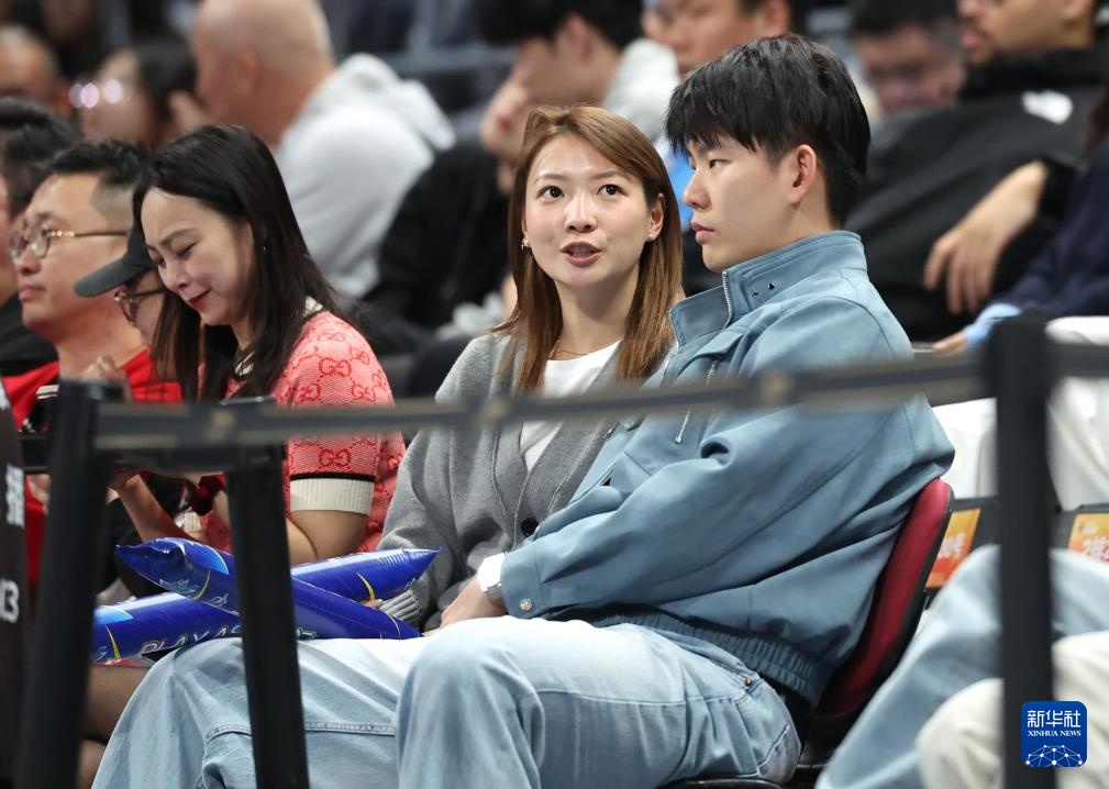 4月14日,黃雅瓊(右二)、劉雨辰(右一)現(xiàn)場觀看比賽。新華社記者 張晨 攝