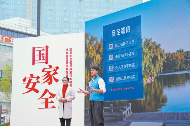 海淀區(qū)昨天舉辦全民國家安全教育日活動(dòng),志愿者通過情景劇演繹向市民普及國家安全知識。北京日報(bào)記者 王海欣攝