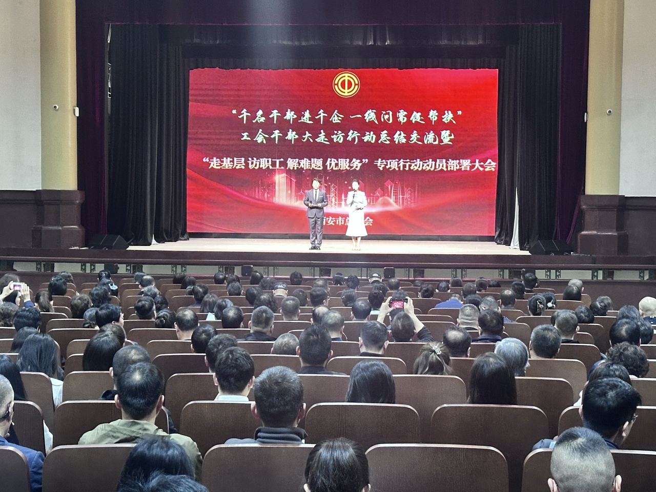 4月10日上午,西安市總工會(huì)“千名干部進(jìn)千企 一線問(wèn)需促幫扶”工會(huì)干部大走訪行動(dòng)總結(jié)交流活動(dòng)暨“走基層 訪職工 解難題 優(yōu)服務(wù)”專項(xiàng)行動(dòng)動(dòng)員部署大會(huì),在西安市工人文化宮舉辦。
