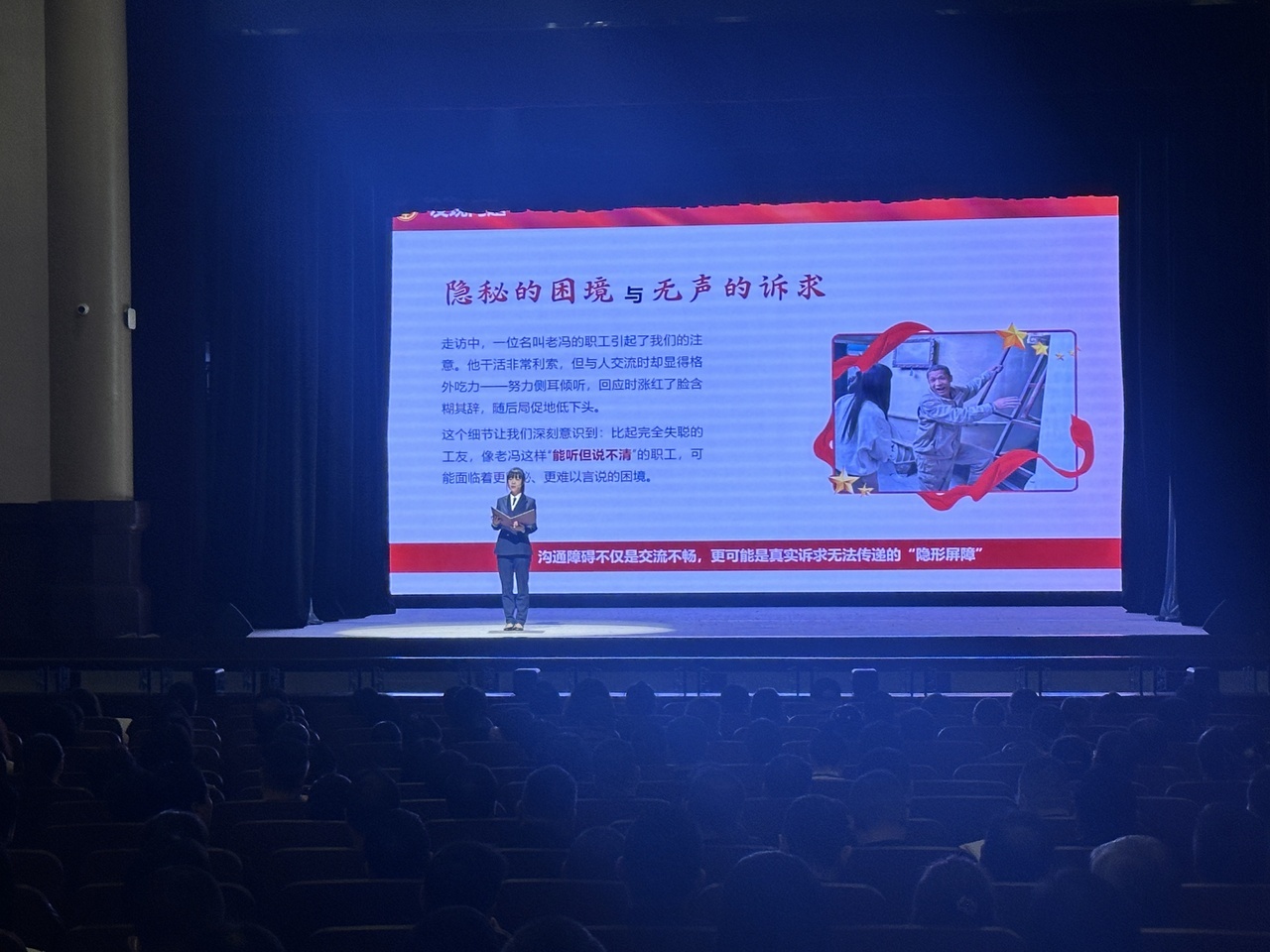 總結(jié)交流活動(dòng)現(xiàn)場(chǎng),閻良區(qū)總工會(huì)、高新區(qū)總工會(huì)、西安市總工會(huì)財(cái)務(wù)部、西安市職工幫扶服務(wù)中心等分別做以《用心“聽(tīng)”見(jiàn)無(wú)聲的需求》《起于微光 終燃星河》《貼心服務(wù)暖企心 實(shí)干擔(dān)當(dāng)促發(fā)展》《用心幫扶暖人心 實(shí)干篤行促成長(zhǎng)》等為題的交流發(fā)言。未央?yún)^(qū)總工會(huì)、灞橋區(qū)總工會(huì)則分別以《暖陽(yáng)》《初心》為題,將工會(huì)干部大走訪過(guò)程中的一些感人故事化作情景劇,在臺(tái)上生動(dòng)展示。