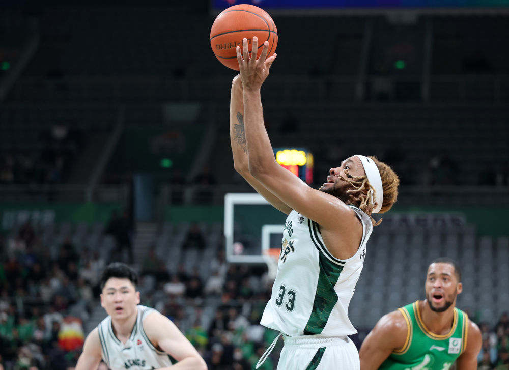 ↑ 南京天之藍隊球員帕克(中)在比賽中。新華社記者 李鋼 攝