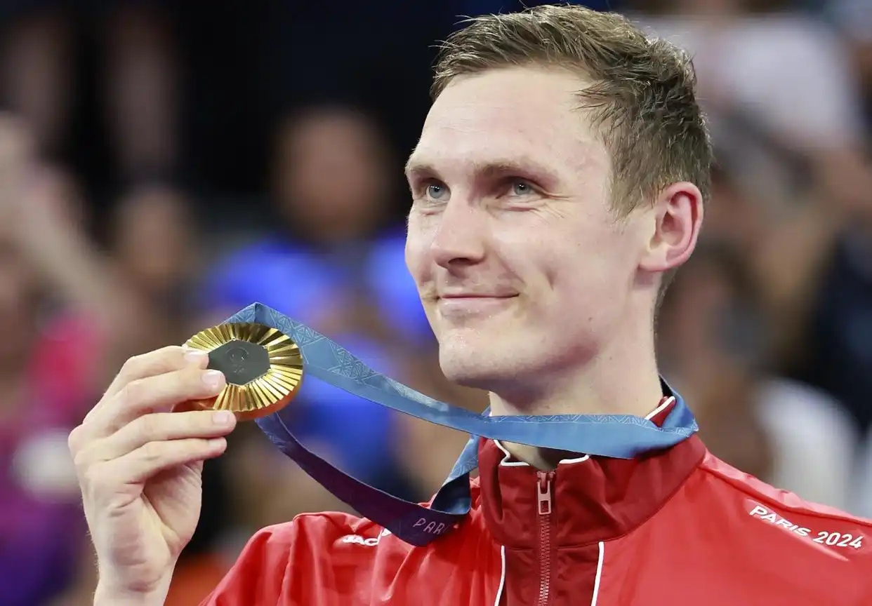巴黎奧運(yùn)會(huì)奪冠后的安賽龍。新華社