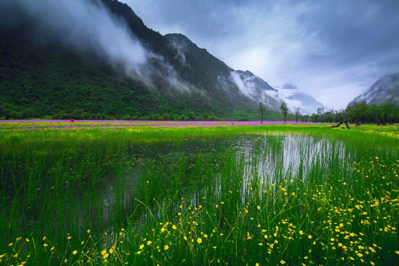 四姑娘山世界地質(zhì)公園位于四川省阿壩藏族羌族自治州小金縣內(nèi),地處青藏高原與四川盆地的過渡地帶,面積2764.01平方公里。公園以松潘—甘孜造山帶“西康式”褶皺、“西康群”濁積巖復(fù)理石建造、青藏高原東緣極高山群峰以及獨(dú)特的冰川地貌為主要特色,記錄了所在地區(qū)從古特提斯洋演化到青藏高原東緣隆起的地質(zhì)演變歷程,具有重要的科學(xué)價(jià)值和全球?qū)Ρ纫饬x。四姑娘山屬于全球生物多樣性熱點(diǎn)地區(qū),分布著2000余種高等植物,有世界最大、最古老的中國沙棘天然林,大熊貓、雪豹等300余種脊椎動(dòng)物以此為家。公園范圍內(nèi)保存了良好的嘉絨藏族文化,朝山會、鍋莊舞、藏歌會風(fēng)情濃郁,具有鮮明的地域特色。