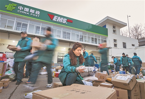 ?1月1日,江蘇省常州市,郵政員工正在分揀包裹。吳敏 攝
