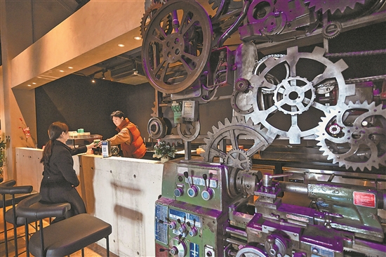 1月3日,產(chǎn)業(yè)會客廳內(nèi)的一家工業(yè)風(fēng)咖啡店在試營業(yè)中。